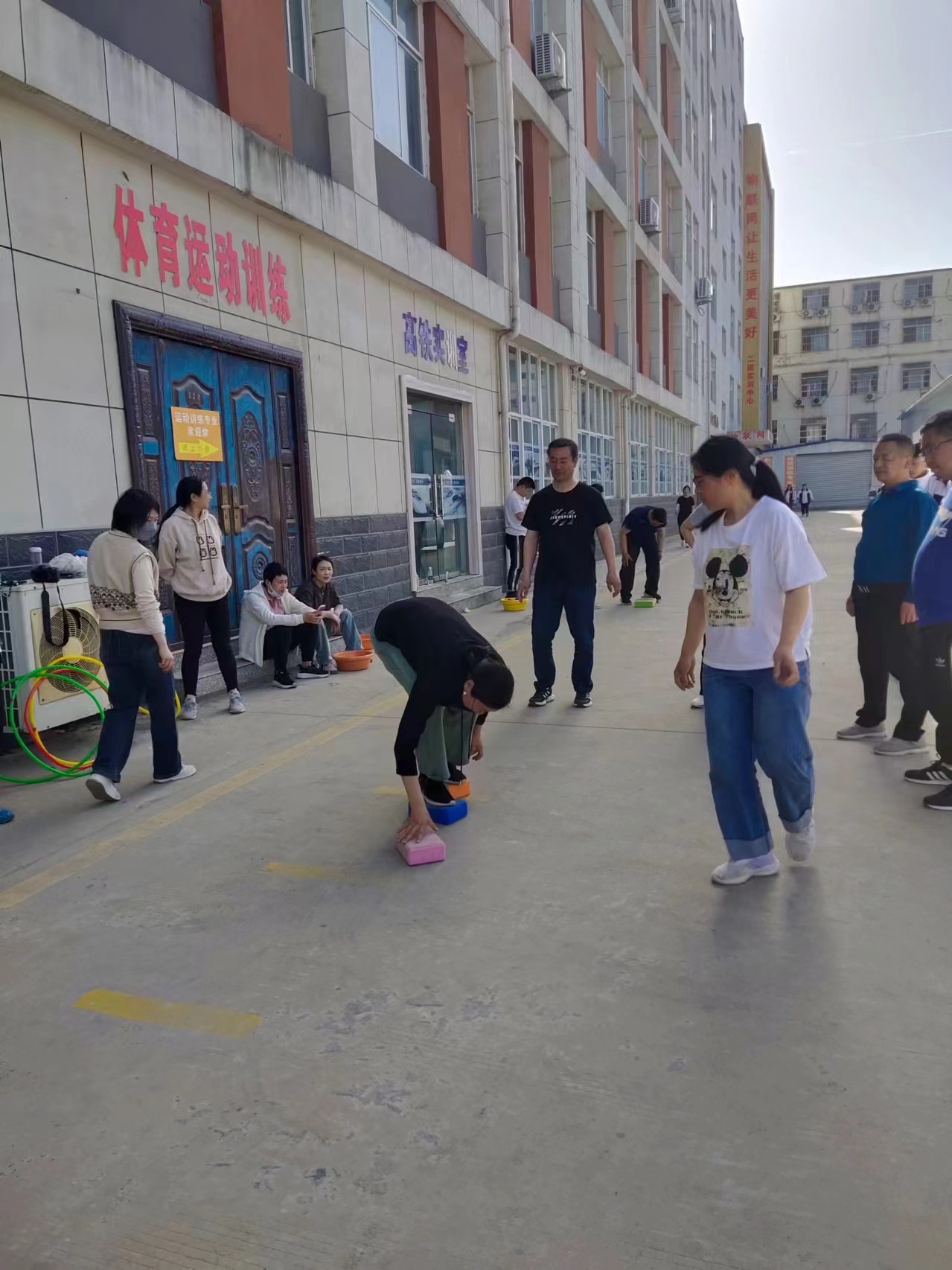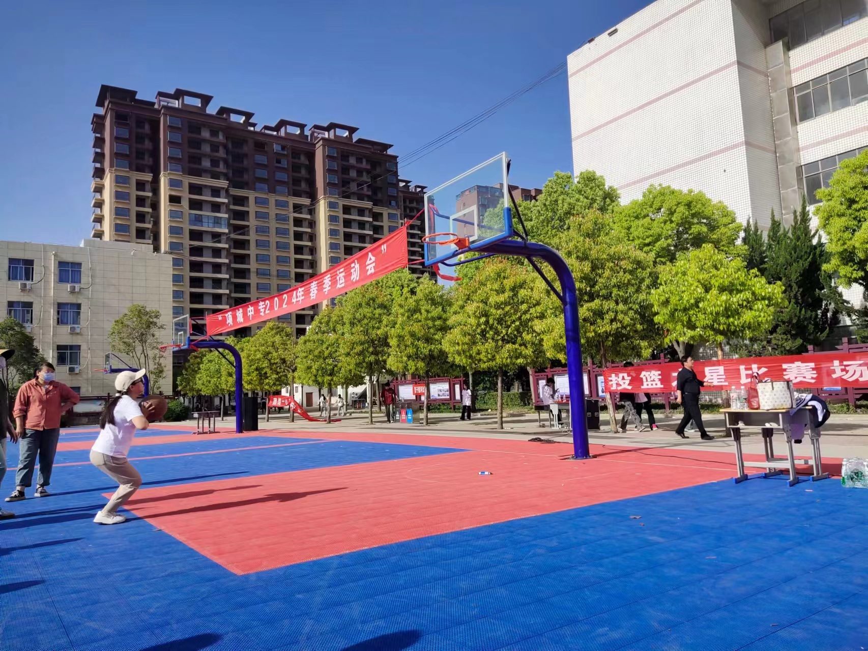 为庆祝五一,我校在4月24日举行了教职工运动会。在本次比赛中,设置了定点投篮,男女乒乓球单打,抢收抢种,摸石头过河,夹书竞走,螃蟹横走等比赛项目,教师们踊跃报名,积极参与,赛出了风格,赛出了水平。以下是比赛中的精彩瞬间: