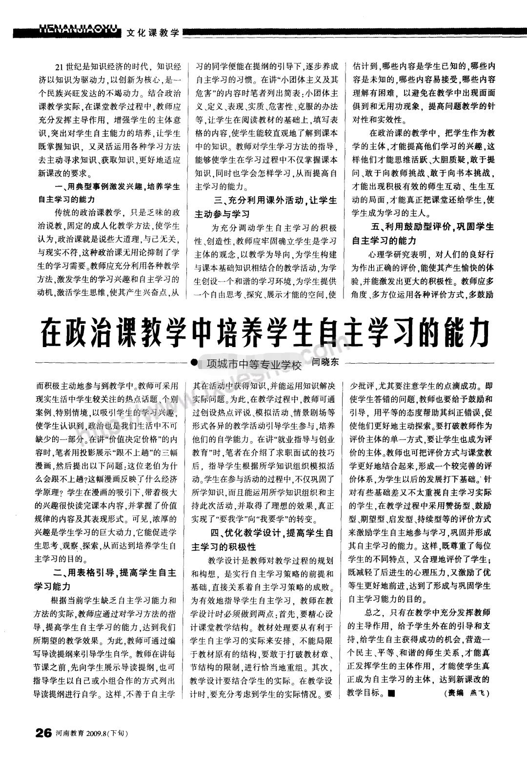 在政治课教学中培养学生自主学习的能力