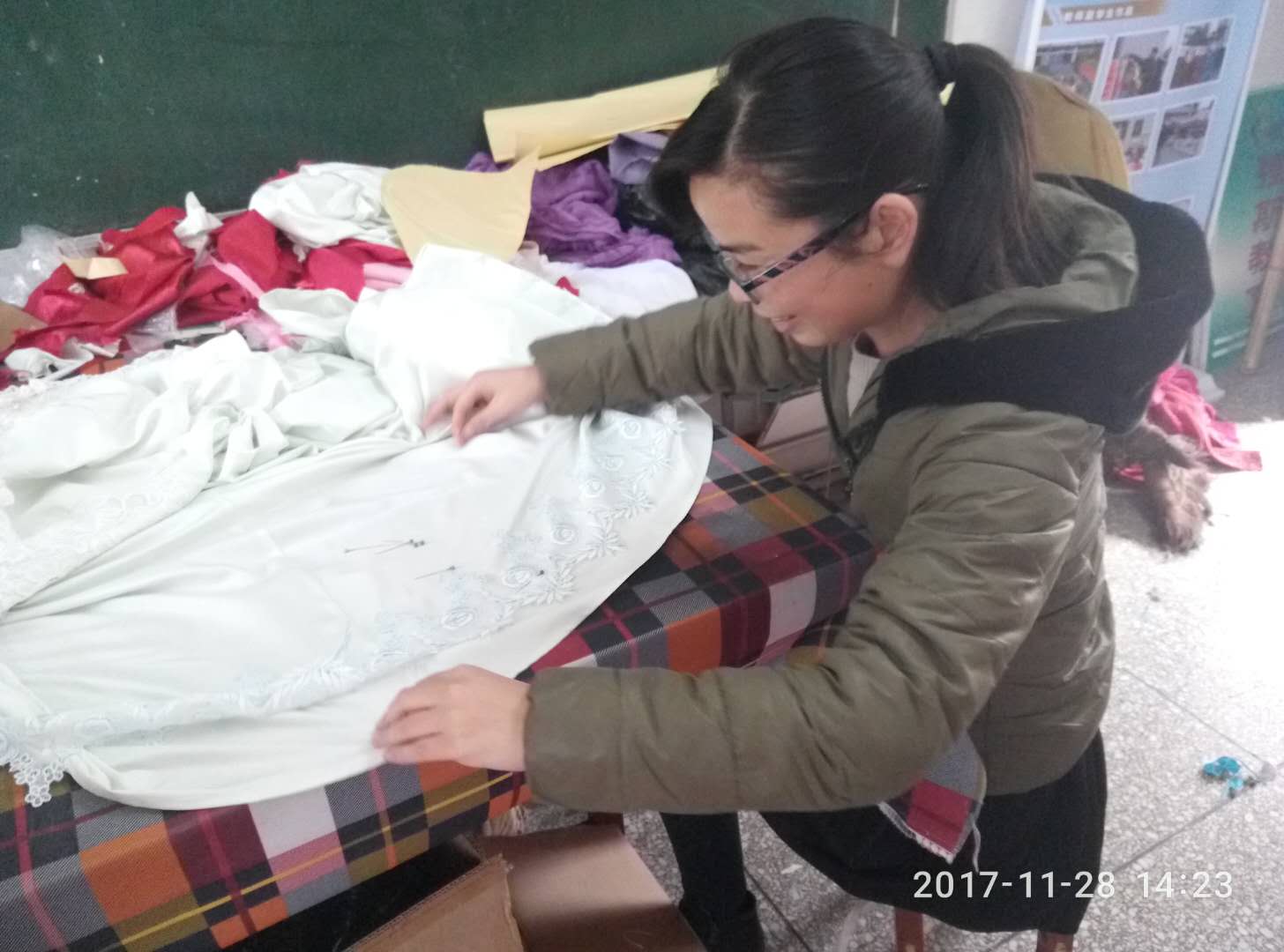 服装专业老师裁制招生宣传袋 服装专业积极承担招生宣传袋制作工作,老师们正在铺布裁剪招生宣传袋,为我校招生工作做前期准···