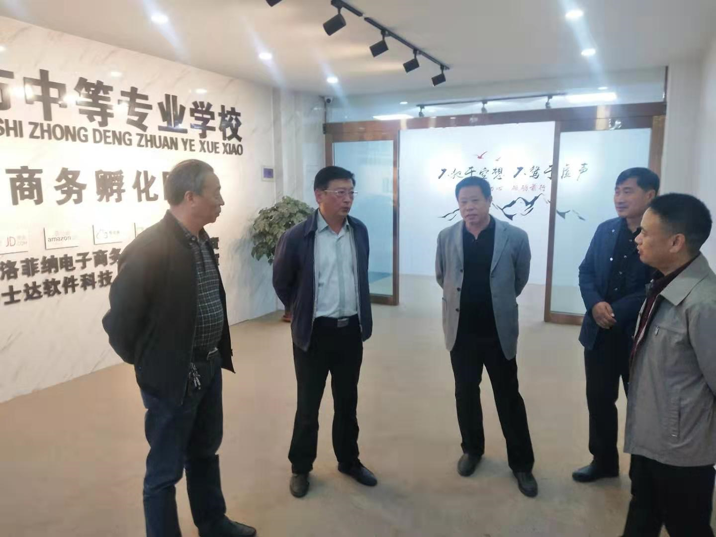 在学校领导班子的带领下,其他学校的老师参观我校的电子商务运行平台。